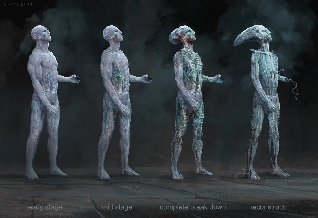 As for David’s tinkering with biological experiments, there are hybridizations of different lifeforms and mutations combined with the pathogen, but the thing is that you get a xeno-like creature even without that. We have the Deacon and the neomorph as well as the hammerpedes and Fifield (especially the deleted scene) turning into an aggressive, xeno-like monster.