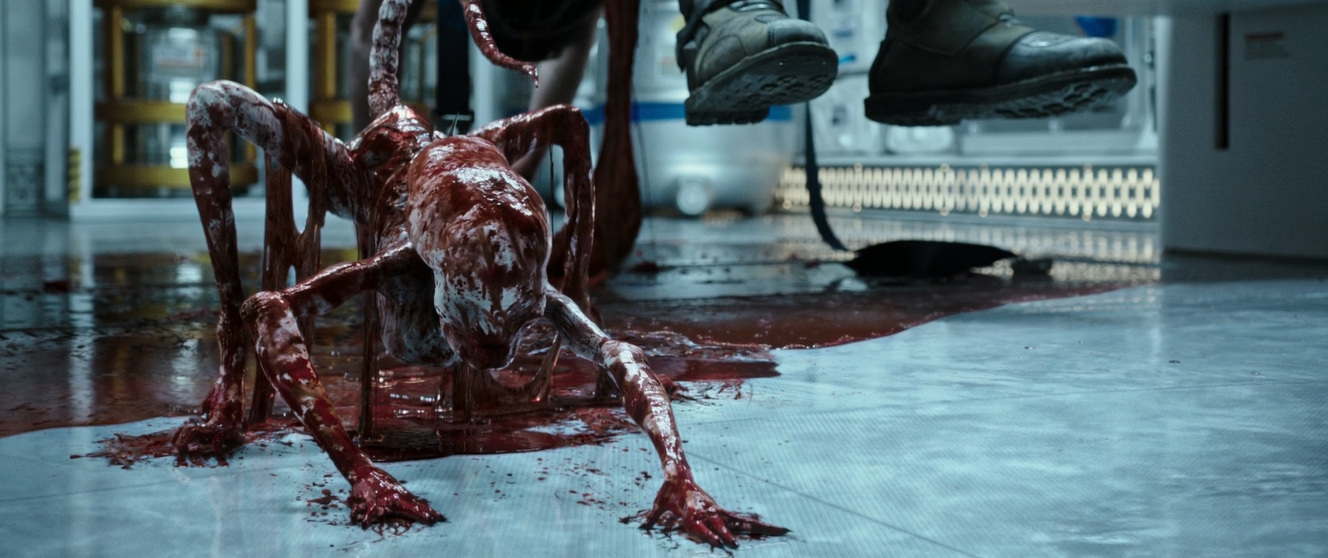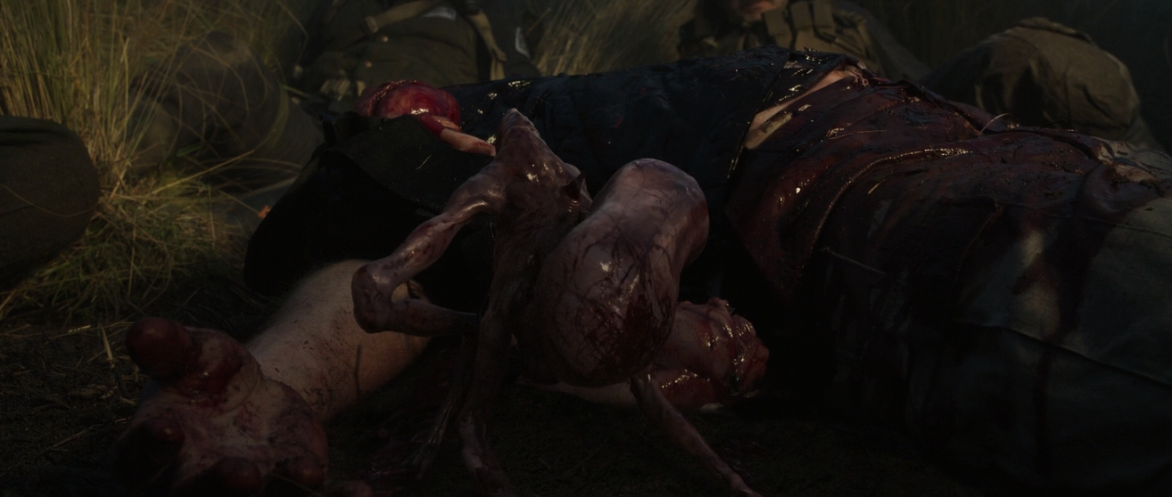 However, I didn't notice any transparency in the newborn neomorph that erupted from Ledward's back. It had pale skin. Idk is it because of the lighting in the room?