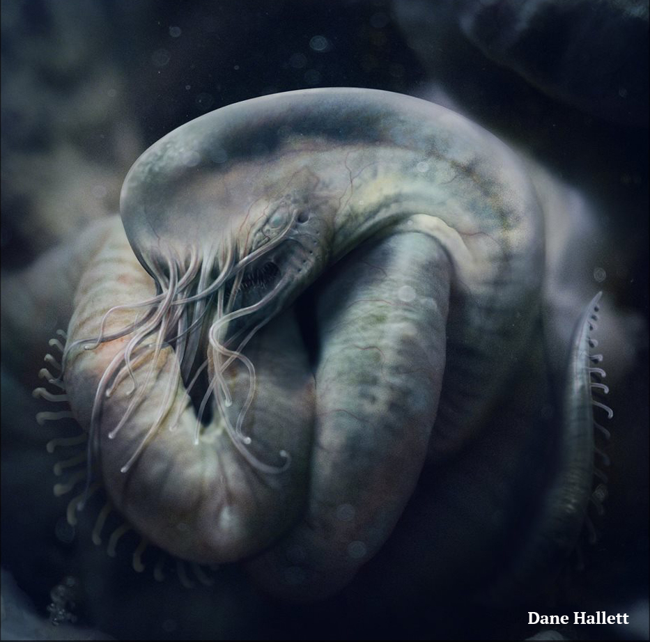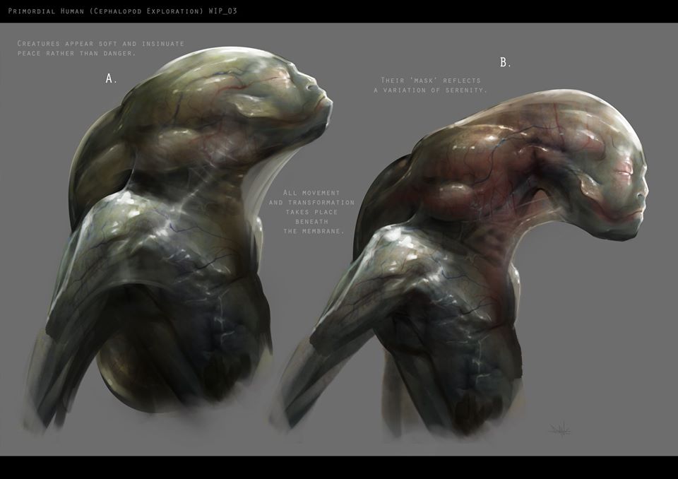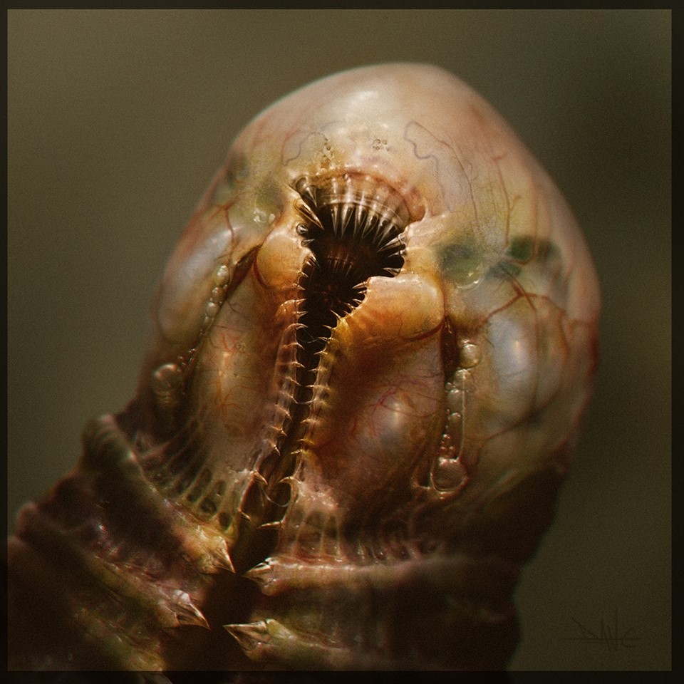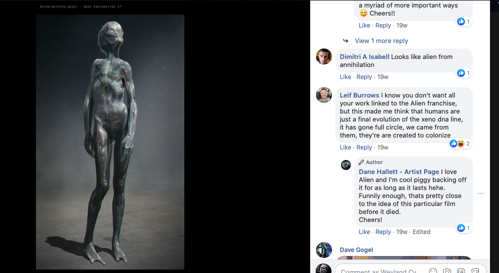 There are concept art pieces on Dane Hallett's Facebook page that are also very interesting in regards to a potential Alien project. These examples below have aspects that may hint towards an Alien relation.