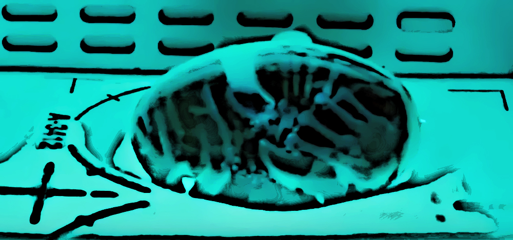He PULLS APART these Flaps to Reveal a Arachnid like Organism, the FACE HUGGER as he takes it out, it begins to HISS and Move with its LAST CLUCH OF LIFE it tries to SMOTHER David but then detects he is NOT LIVING.... This is the LAST ACTION that the Organisms makes, before it FALLS to the FLOOR and CURLS UP.