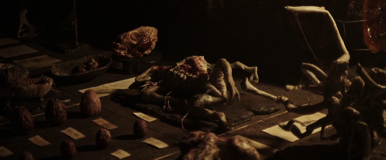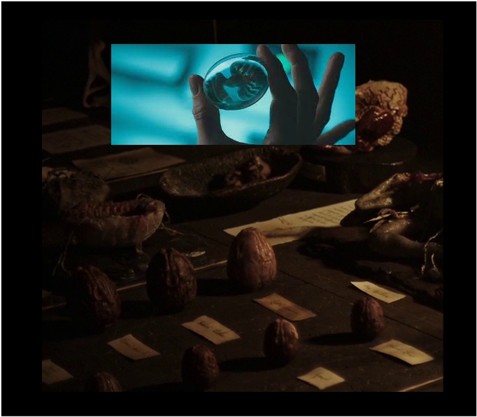 Which i mentioned before.... we can ASSUME that the Eggs in the Room where David takes Oram to become Infected, had been Planted and GROWN from those Smaller Eggs we see on the Table of his Workshop. The END of the Movie we see that David has TWO Small Face Huggers..... NOW these are NOT going to Face Hug anyone... so they MUST at some Stage GROW!