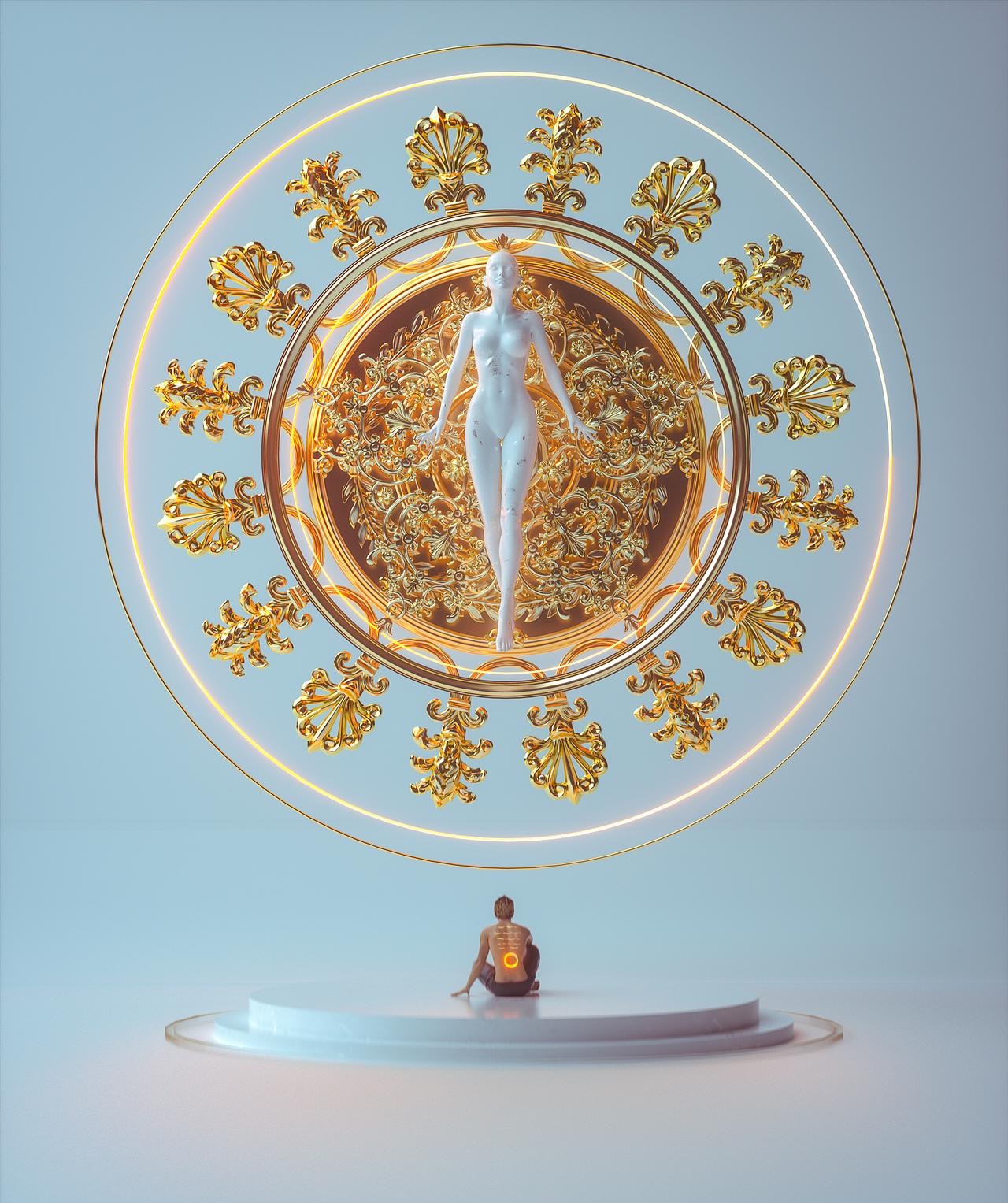 This one artistically is quite extraordinary just for the simple fact that the surface layers of the "skin?" may not be comparable to human flesh in any way we understand through biology or current bio chemistry. In other words the body itself may be of another hybrid material at the boundaries of the Plank scale and come in and out of our assistance through the Higgs model and we see energy states that from the impression of a steady state field, and even then its still trillions times more complex.