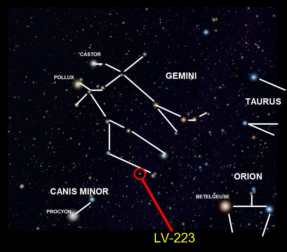 The System was the Zeta Reticuli System, however that Star Chart is Incorrect as the Reticulum Constellation would NOT be Located where LV-223 was shown.