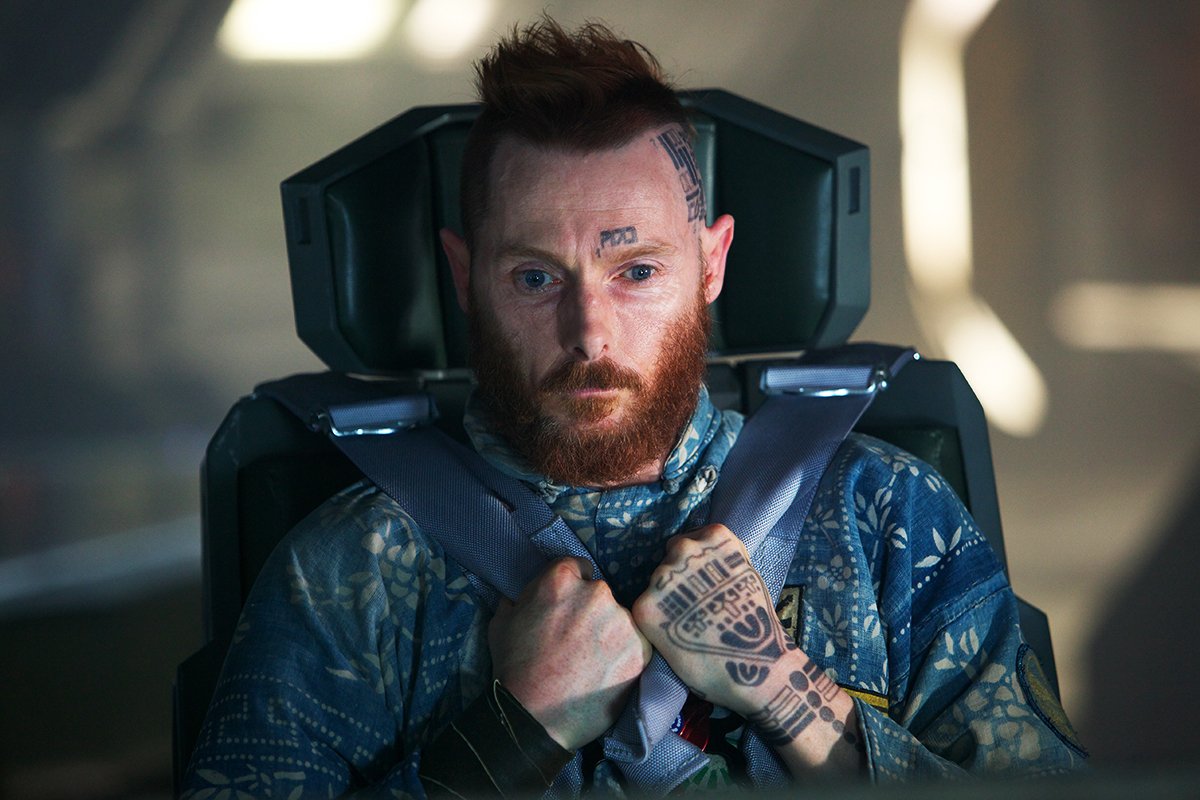 So now we know we do not want Fifield to point out so much. We have to make him less noticeable from the rest of the crew, at least when he speaks because he sounds like a Fk! in nut not a scientist on one of the most important secret missions. In simpler terms we want him more within the boundaries of the 1/3 ratio of all other aspects of all the other crews behaviors and onscreen mannerisms.