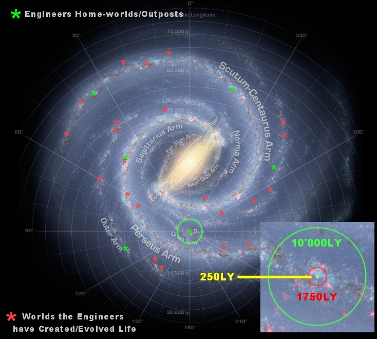 In this Example the CLOSEST other World the Engineers have Created Life on is 12'500LY from Earth, the NEXT CLOSEST such World of the Engineers is 25'000LY Away......