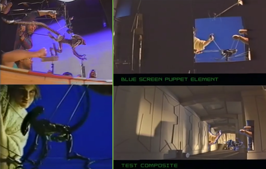 Fun fact: the runner alien was actually a rod puppet that was filmed in front of a blue background (for some shots it was a dude in a suit). The reason it looks so rough is because of the bad compositing, which is a shame because the puppeteering is pretty good.