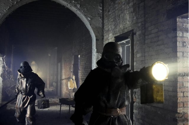 I forgot about the birds! Reminded me if those Order Soldiers in Christophe Gans Silent Hill film from 2006. Dressed in coal miner suits and holding a cage with a lil birdie (miner to the left in the picture below)