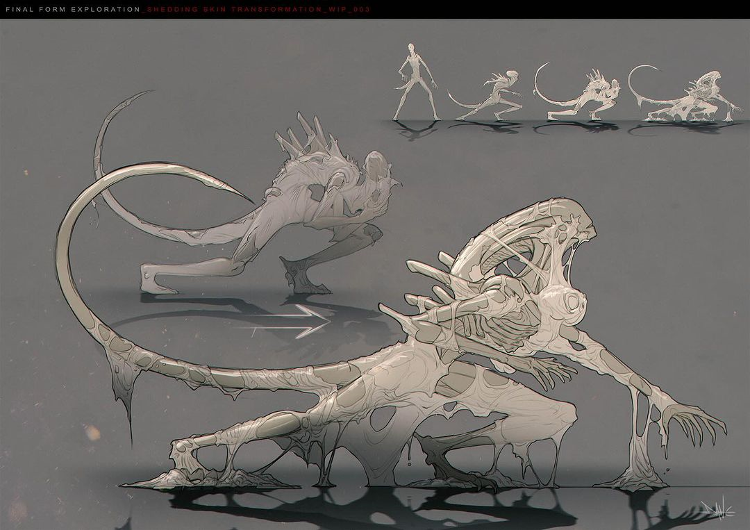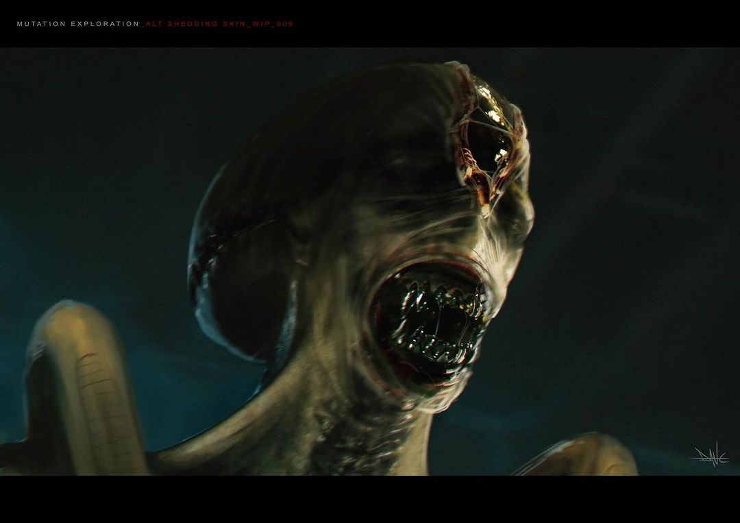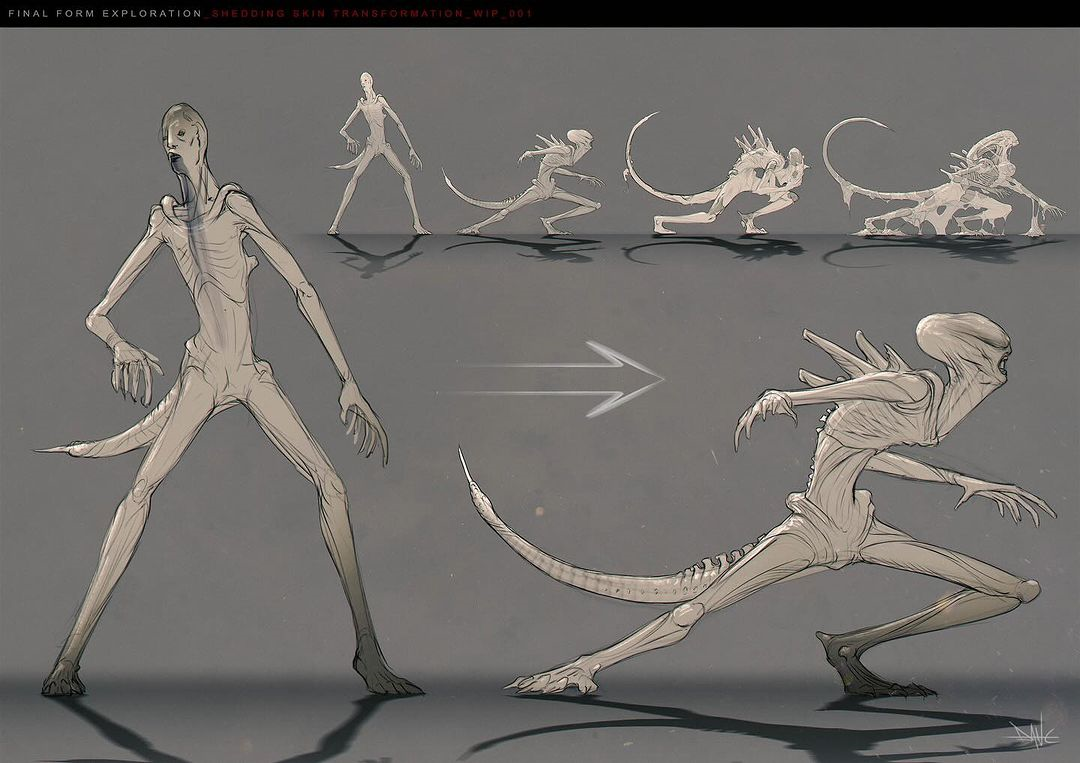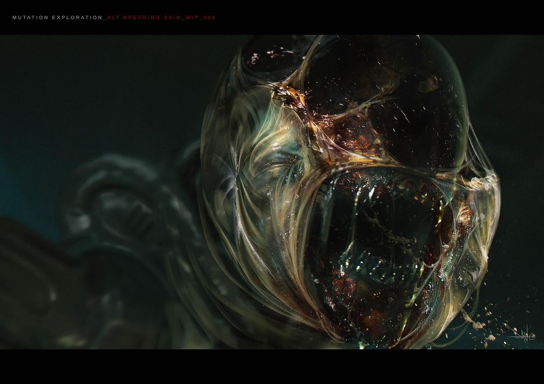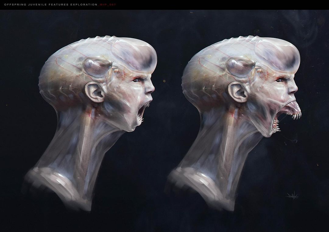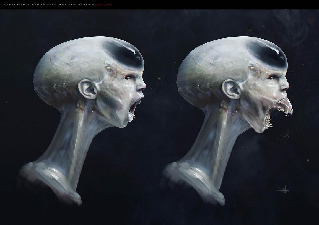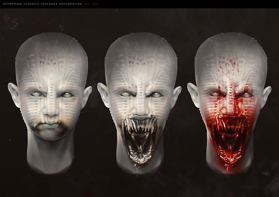Some more concept art by Dane Hallett of the Offspring depicts its skin falling off and turning into a Xenomorph, just like Mike mentioned in the rough cut he saw.