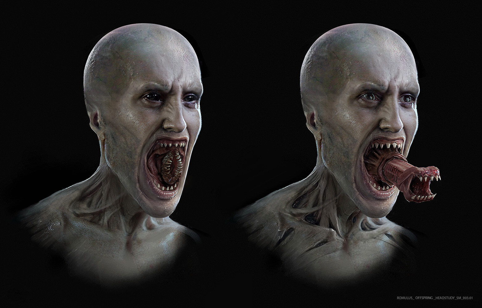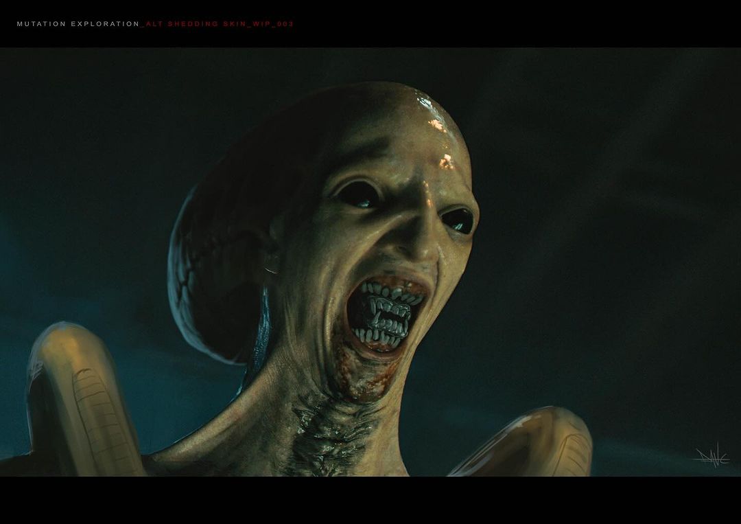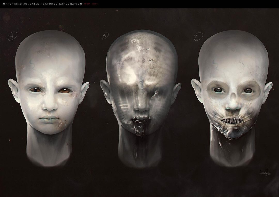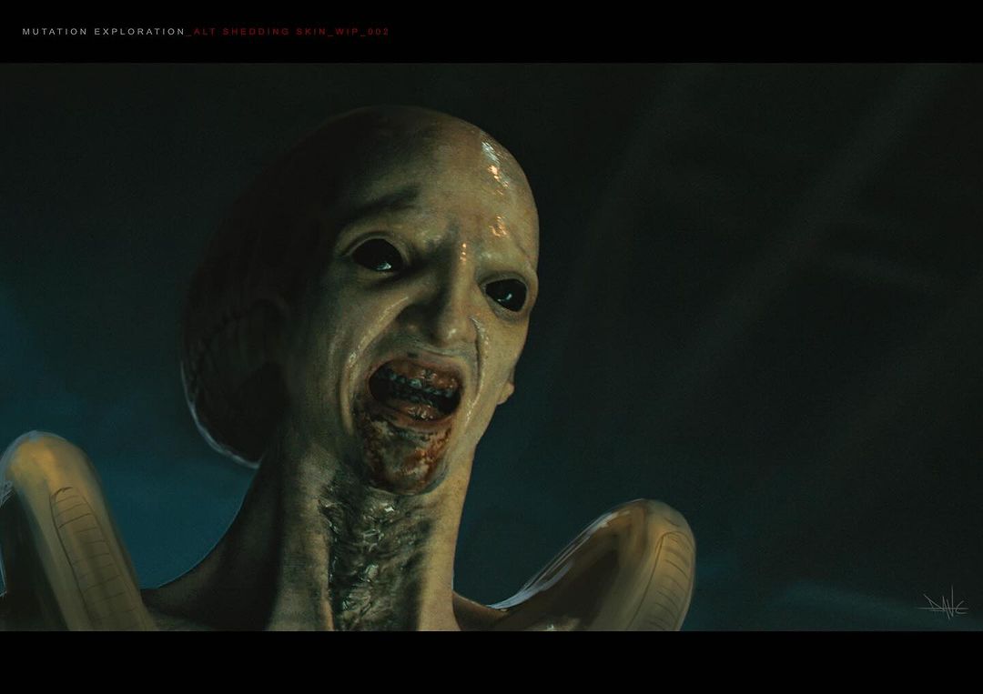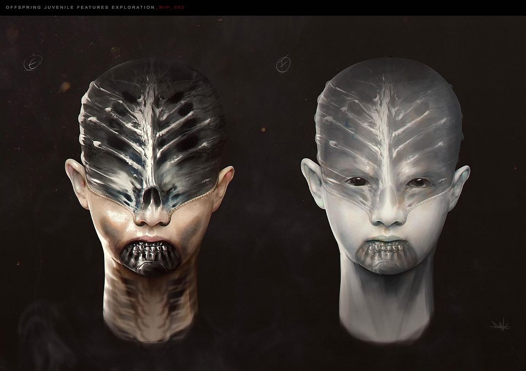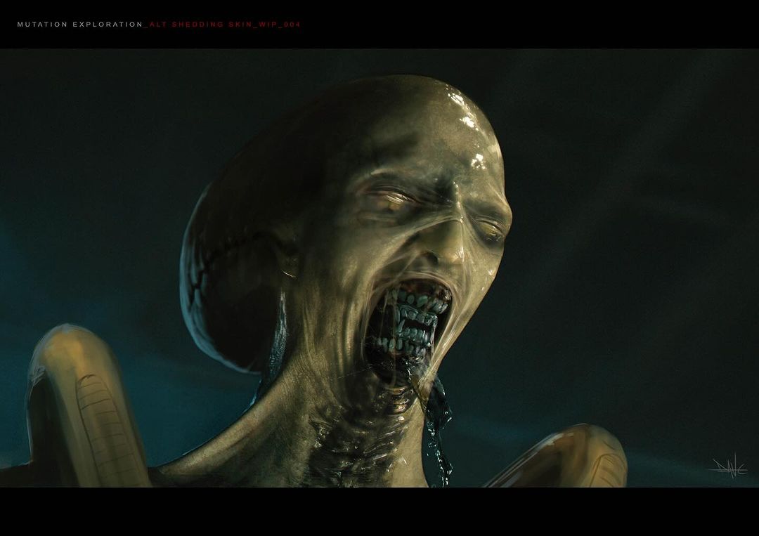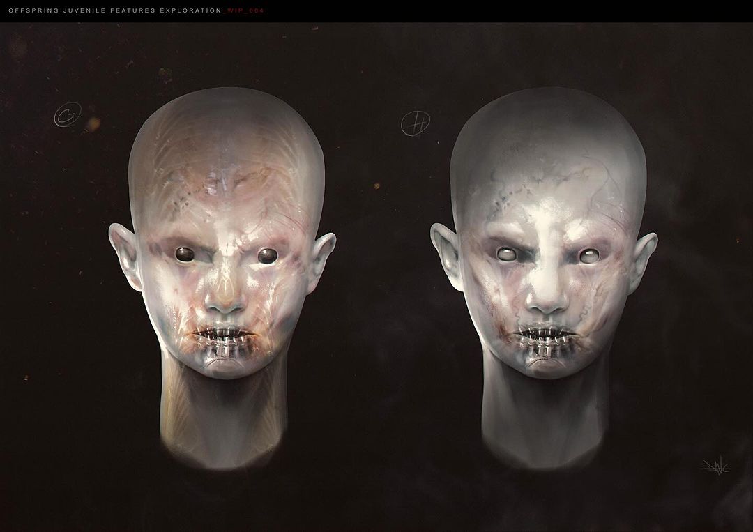 Some more concept art by Dane Hallett of the Offspring depicts its skin falling off and turning into a Xenomorph, just like Mike mentioned in the rough cut he saw.